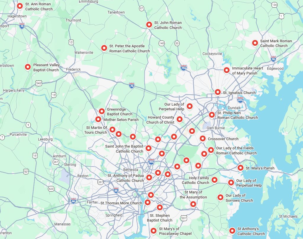 Find our map of partner churches below! Our helpline will work to connect you with the closest church to your area.